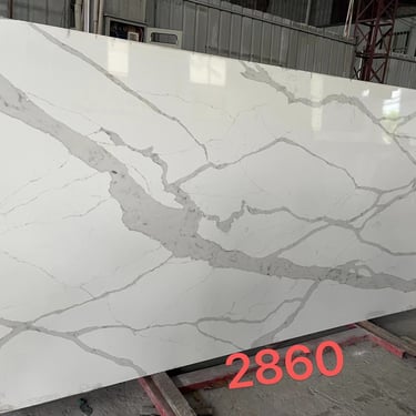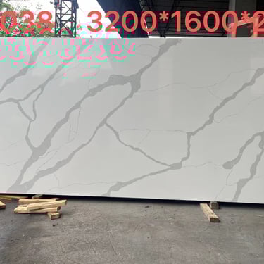 Calacatta Quartz Slab is a luxurious engineered stone that combines the beauty of natural Calacatta marble with the durability of quartz. Made from crushed quartz bound with resin and pigments, it offers a stunning white background with bold, blue-gray veining. This material is highly resistant to stains, scratches, and heat, making it ideal for kitchen and bathroom countertops. Its non-porous surface also ensures easy maintenance and hygiene. Calacatta quartz slabs provide a sophisticated, high-end look while being more practical and low-maintenance than natural marble.